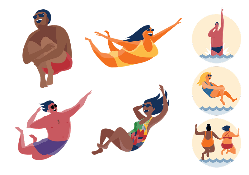 These campaigns are so fun. Pair up with a content pal and let the creativity fly. When we mood-boarded ideas, the feeling of “jumping in” kept coming up and we decided to do a fully illustrated campaign around the idea of “jumping into social”.